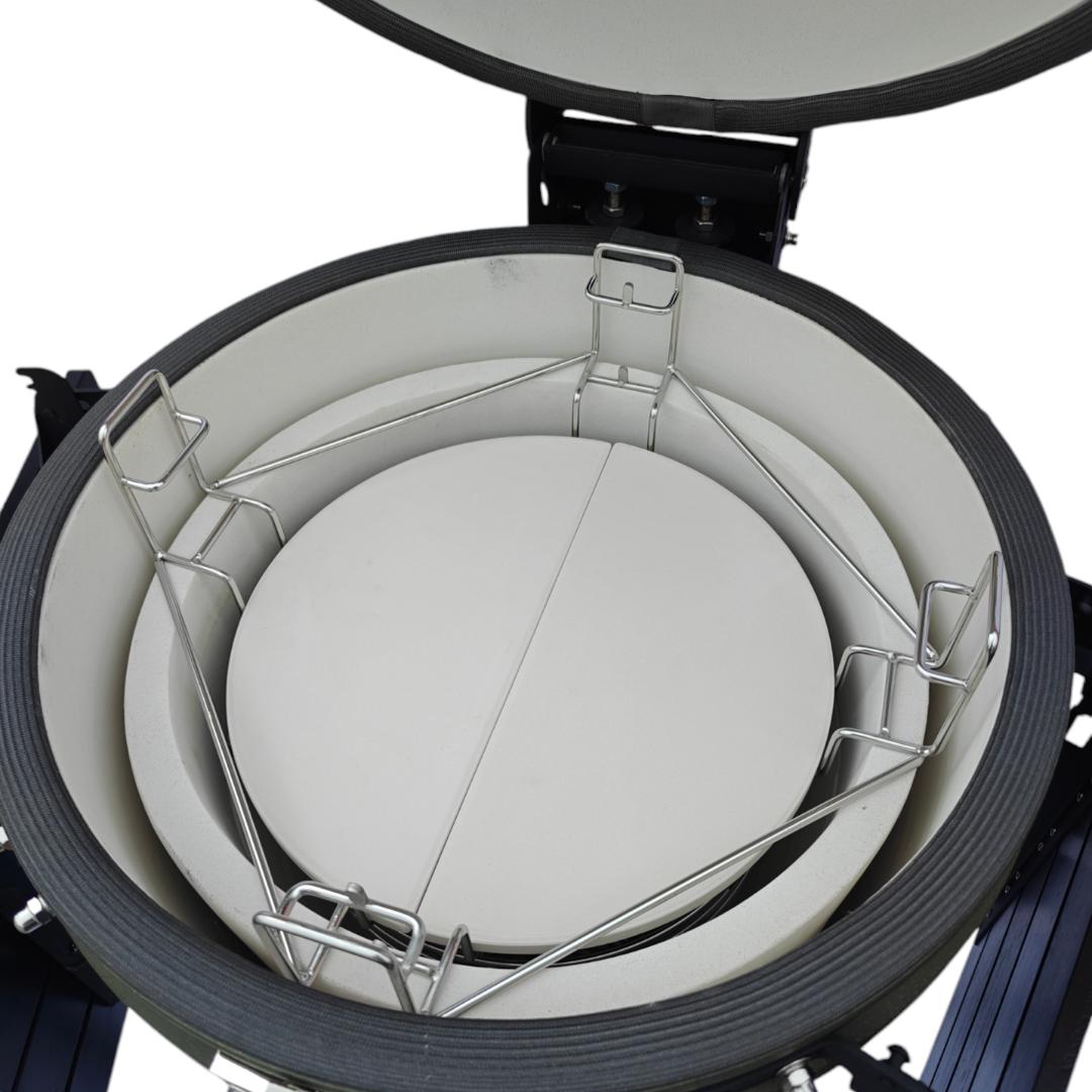 Deze deflector plates zijn vervaardigd uit hoogwaardig cordieriet keramiek, hetzelfde keramiek wat gebruikt wordt in de Kamado van EXPLODE BBQ. Dit materiaal staat bekend om zijn extreme hittebestendigheid en hoge sterkte. Dankzij de stevige dikte van 2 cm wordt warmte optimaal vastgehouden en blijft de temperatuur in je Kamado stabiel, wat essentieel is voor pulled pork, spareribs, brisket of een hele kip. Door de robuuste constructie is het hitteschild geschikt voor intensief gebruik en lange BBQ-sessies.
