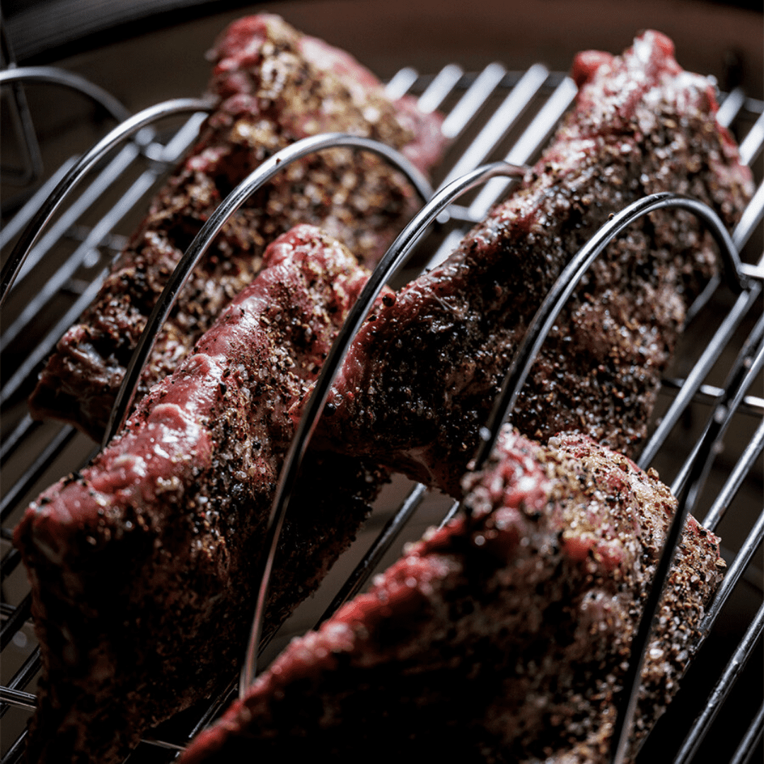 Dankzij het slimme ontwerp kun je tot 6 spareribs tegelijk bereiden zonder dat ze elkaar raken. Hierdoor bespaar je ruimte op je grillrooster en kun je efficiënter barbecueën. Ideaal wanneer je voor meerdere personen kookt of tijdens een gezellige BBQ met vrienden en familie.